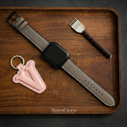 Personalized Handcrafted Brownish Grey Leather iWatch Band (38mm–49mm) for Apple Watch Series SE2, 10, 9, 8 & 7 – NorthCrafts