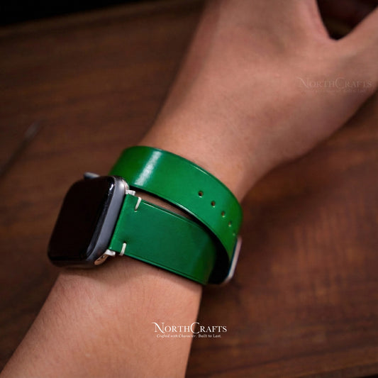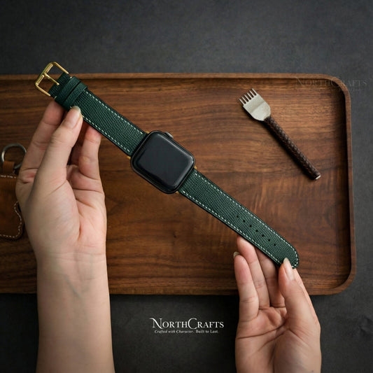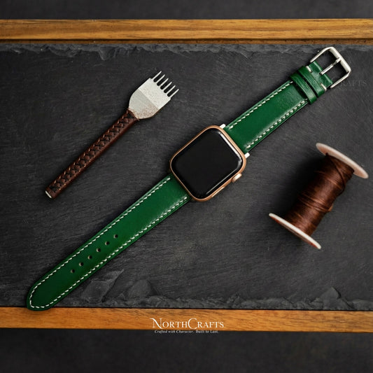 Personalized Handcrafted Green Leather iWatch Band (38mm–49mm) for Apple Watch Series SE2, 11, 10, 9, 8 & 7 – NorthCrafts
