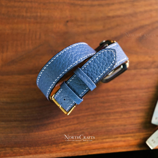 Personalized Handcrafted Leather Double Wrap iWatch Band (38mm–49mm) for Apple Watch Series SE2, 11, 10, 9, 8 & 7 – NorthCrafts