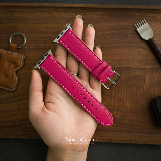 Personalized Handcrafted Rose Pink Leather iWatch Band (38mm–49mm) for Apple Watch Series SE2, 11, 10, 9, 8 & 7 – NorthCrafts